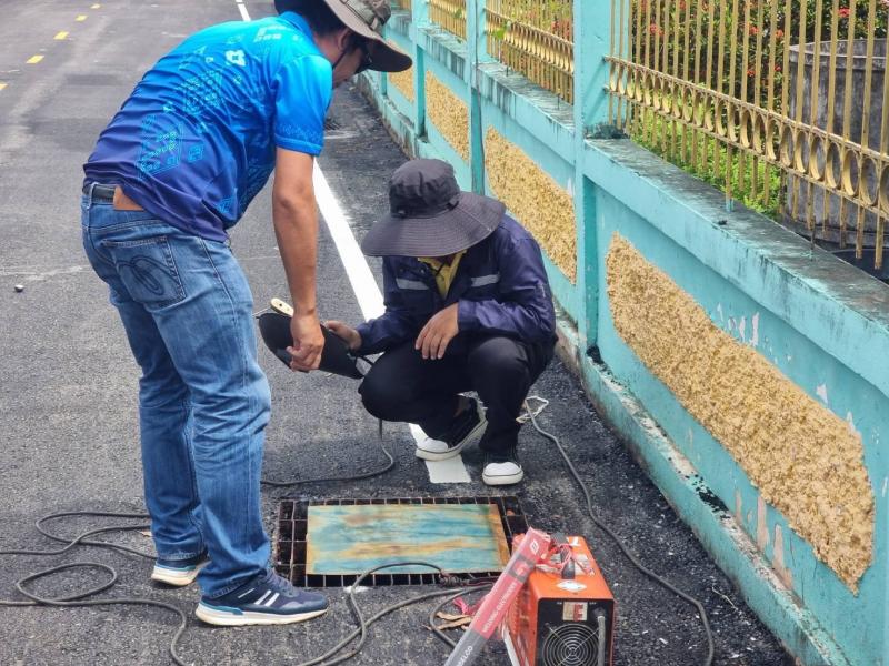 กองช่างเทศบาลตำบลงิ้วด่อน ออกดำเนินการซ่อมแซมฝาบ่อพัก คสล.ถนนลาดยางสาย อิสานเขียว ม.1 บ้านงิ้วด่อน