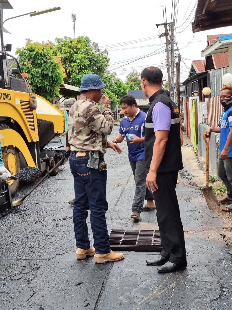 นายกเทศมนตรีตำบลงิ้วด่อน ลงพื้นที่ตรวจความคืบหน้าในการดำเนินการตาม โครงการซ่อมสร้างผิวทางแอสฟัลติกคอนกรีตหมู่ที่ 1 สายหน้าศาลาอิสานเขียว