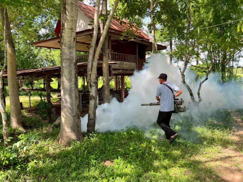 ออกพ่นหมอกควันป้องกันยุงลาย ที่ วัดขามเฒ่า หมู่5 และวัดบ้านคูสนามหมู่3