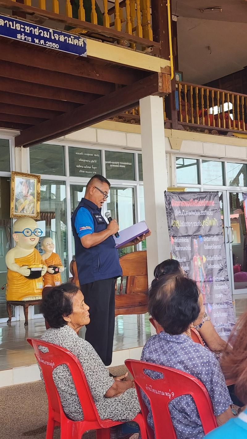 พร้อมด้วยนางสาววรรณธิรา นามเพ็ง เลขานุการฯ สท.ทัศครศรีวาโสม คณะเจ้าหน้าที่โรงพยาบาลส่งเสริมสุขภาพบ้านคูสนาม ร่วมเปิดโครงการอบรมหมู่บ้านร่วมใจต้านภัยยาเสพติด ประจำปีงบประมาณ 2568 หมูที่ 9
