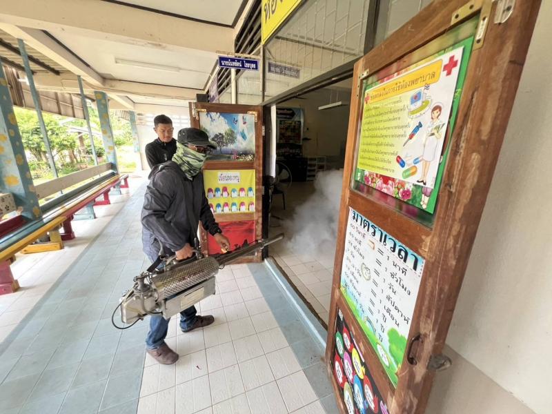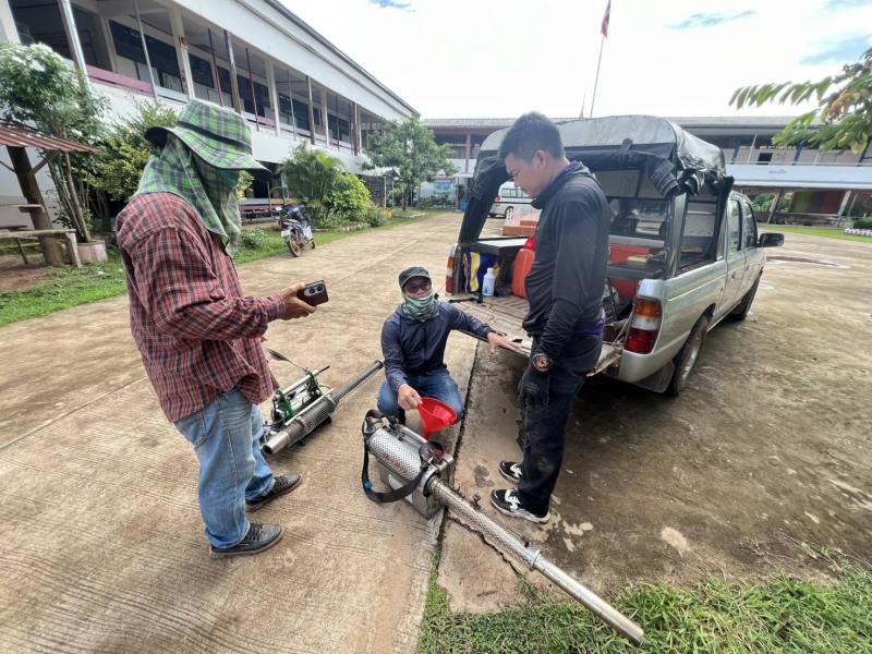 ออกพ่นหมอกควันกำจัดยุงตัวเต็มวัยและสำรวจลูกน้ำยุงลาย ตามโครงการควบคุมและป้องกันโรคไข้เลือดออก ประจำปีงบประมาณ 2568