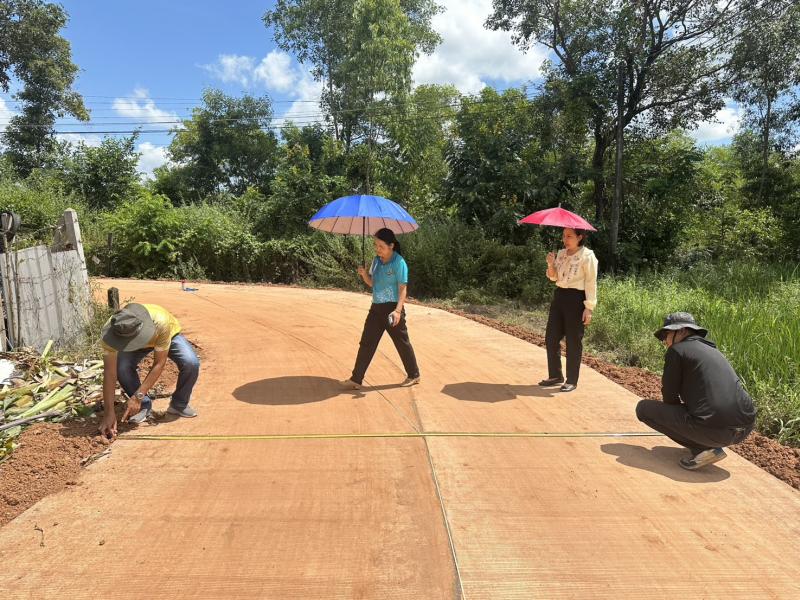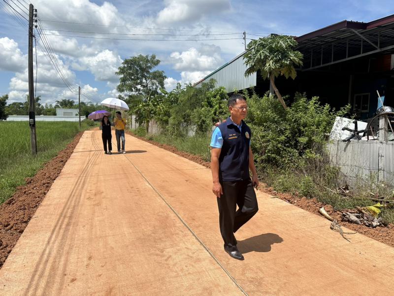 นายถนอม สมผล นายกเทศมนตรีตำบลงิ้วด่อน พร้อมด้วยนายสริภพ สมผล รองนายกเทศมนตรีตำบลงิ้วด่อน และคณะกรรมการตรวจรับงานจ้างตามโครงการก่อสร้างถนนคอนกรีตเสริมเหล็กภายในหมู่บ้าน สายหนองจ่าโท และได้ดำเนินตรวจรับงานจ้างตามโครงการ