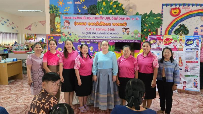 นายกเทศมนตรีตำบลงิ้วด่อนมอบหมายให้ นางฐิติชญาภา ศรีชุบร่วง ผู้อำนวยการกองการศึกษา เปิดการอบรมโครงการส่งเสริมสุขภาพเด็กปฐมวัยด้วยหลัก 3 อ. ณ ศูนย์พัฒนาเด็กเล็กบ้านนายอ
