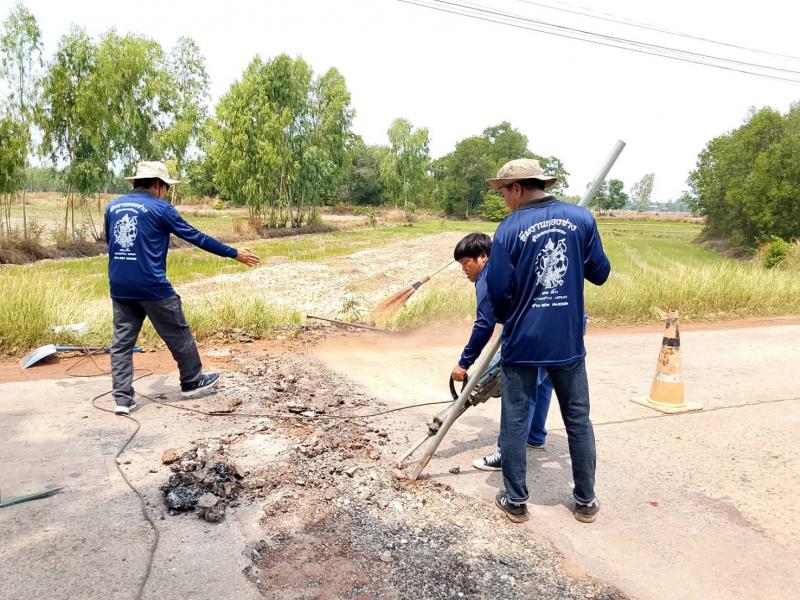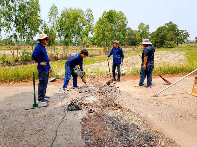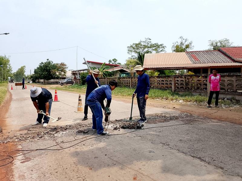 กองช่างเทศบาลตำบลงิ้วด่อน ออกดำเนินการปรับปรุงผิวถนนสายธาตุดูม - หนองแดง จุดบ้านดอนจ้อก้อ