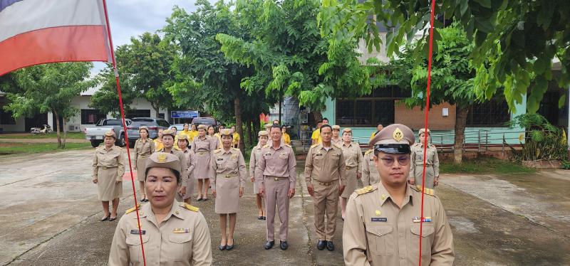 พร้อมคณะผู้บริหาร ปลัดเทศบาลและหัวหน้าส่วนราชการและพนักงานเทศบาล พนักงานจ้างเทศบาลตำบลงิ้วด่อน ร่วมกิจกรรมเคารพธงชาติเนื่องในวันพระราชทานธงชาติไทย