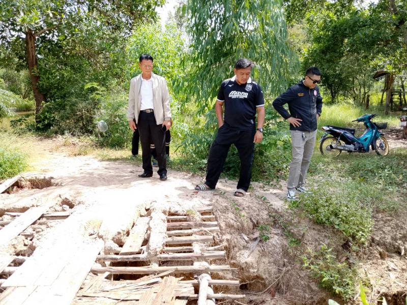 นายถนอม สมผล นายกเทศมนตรีตำบลงิ้วด่อน พร้อมด้วย สท.ทัศคร ศรีวาโสม และเจ้าหน้าที่งานป้องกันฯ ออกตรวจสอบจุดที่น้ำเซาะท่อระบายน้ำ หมู่ที่ 13