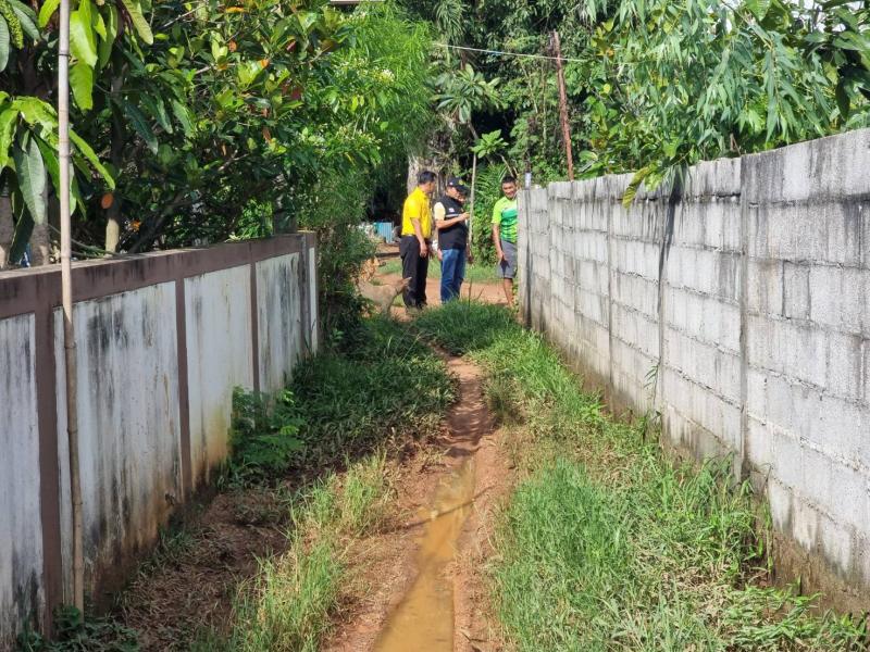 พันตรี ระเวียง ฤทธิธรรม รองนายกเทศมนตรี พร้อมด้วยเจ้าหน้าที่กองช่างเทศบาลตำบลงิ้วด่อนสำรวจถนนลูกรังที่มีน้ำท่วมขังตามหนังสือร้องขอบ้านทับสอ หมู่ที่ 2