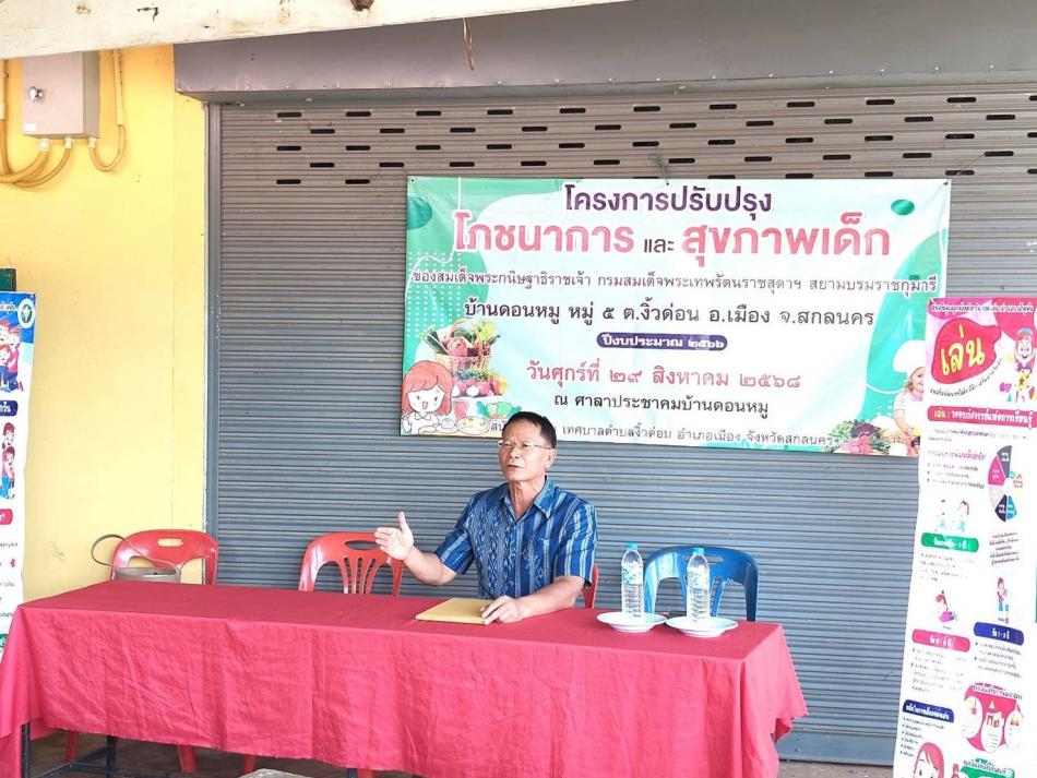 นายกเทศมนตรีตำบลงิ้วด่อน พร้อมด้วยคณะผู้บริหารฯเปิดโครงการปรับปรุงโภชนาการและสุขภาพเด็กของสมเด็จพระกนิษฐาธิราชเจ้ากรมสมเด็จพระเทพรัตนราชสุดาฯ ณ.ศาลาประชาคมบ้านดอนหมู่ [29 สิงหาคม 2568]