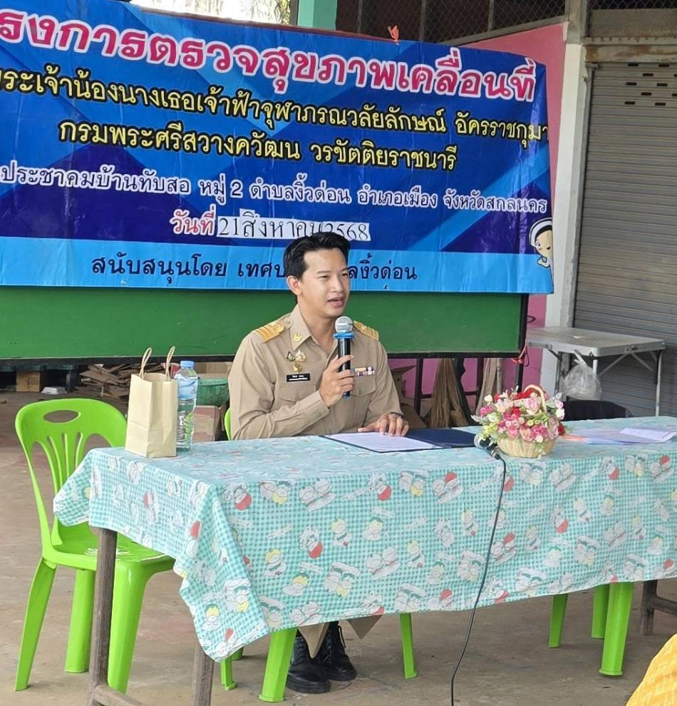 นายกเทศมนตรีตำบลงิ้วด่อน เป็นประธานเปิดโครงการตรวจสุขภาพเคลื่อนที่ สมเด็จพระเจ้าน้องนางเธอ เจ้าฟ้าจุฬาภรณวลัยลักษณ์ อัครราชกุมารี ณ วัดบ้านกกกอก หมู่ที่ 12 [21 สิงหาคม 2568]