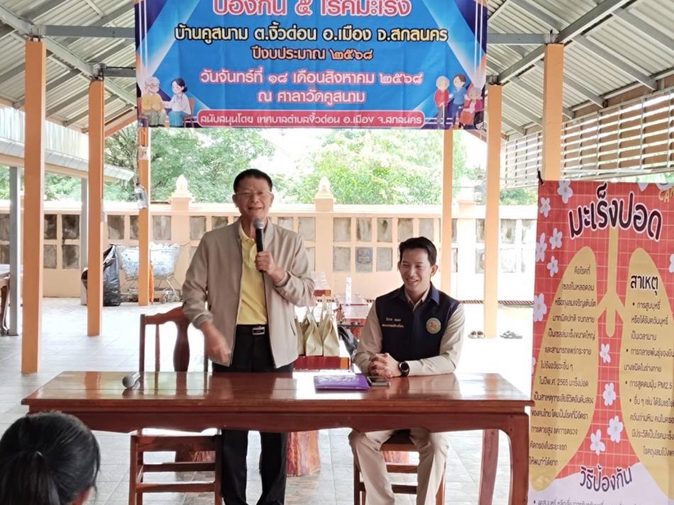 นายกเทศมนตรีตำบลงิ้วด่อน พร้อมด้วยรองนายกเทศมนตรีตำบลงิ้วด่อน ร่วมเปิดโครงการชุมชนใส่ใจ ป้องกัน 5 โรคมะเร็ง บ้านคูสนาม ณ วัดบ้านคูสนาม [18 สิงหาคม 2568]