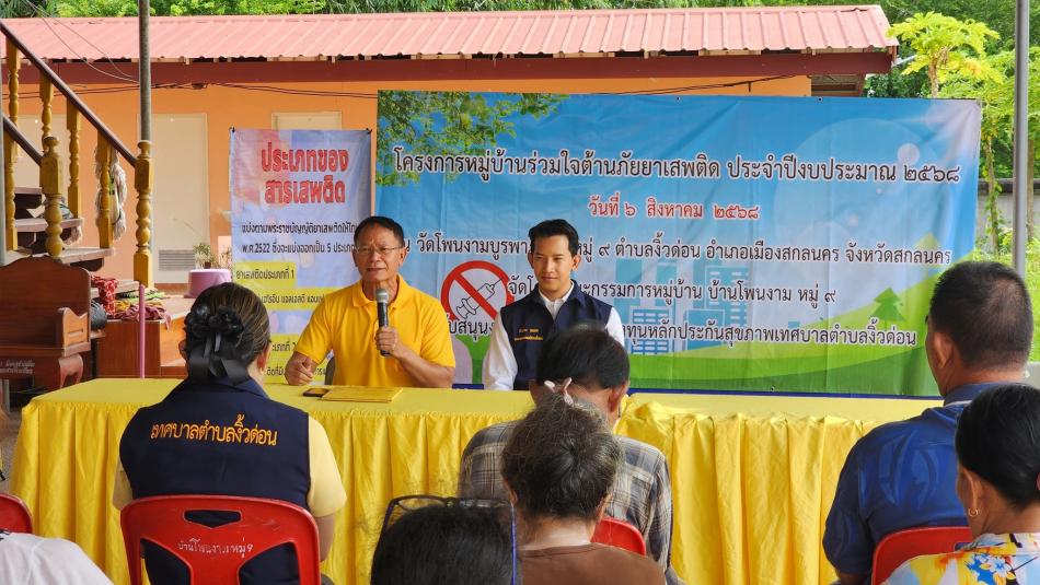 นายกเทศมนตรีตำบลงิ้วด่อน รองนายกเทศมนตรีตำบลงิ้วด่อน พร้อมด้วยเลขานุการฯ และคณะเจ้าหน้าที่โรงพยาบาลส่งเสริมสุขภาพบ้านคูสนาม ร่วมเปิดโครงการอบรมหมู่บ้านร่วมใจต้านภัยยาเสพติด ประจำปีงบประมาณ 2568 [6 สิงหาคม 2568]