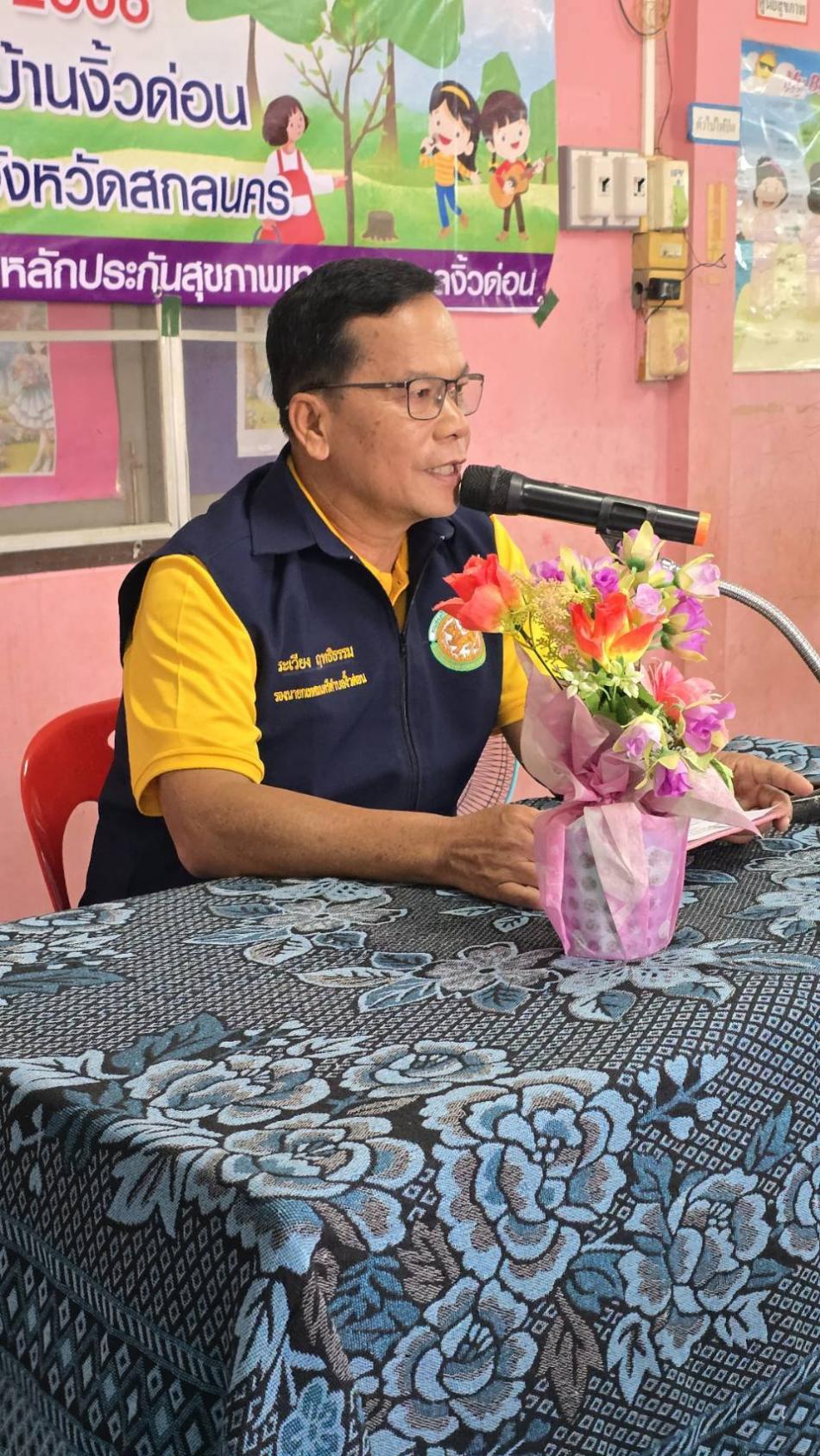 นายถนอม สมผล นายกเทศมนตรีตำบลงิ้วด่อนมอบหมายให้ พันตรีระเวียง ฤทธิธรรม รองนายกเทศมนตรีตำบลงิ้วด่อน เปิดโครงการพัฒนาเด็กปฐมวัยใส่ใจสุขอนามัย ณ ศูนย์พัฒนาเด็กเล็กบ้านงิ้วด่อน [6 สิงหาคม 2568]