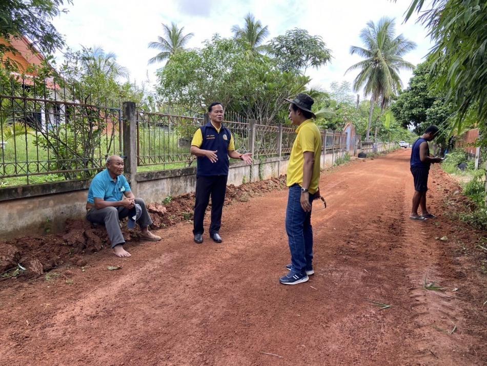 นายกเทศมนตรีตำบลงิ้วด่อนมอบหมายให้รองนายกเทศมนตรีและเจ้าหน้าที่กองช่าง สำรวจการปรับพื้นที่เตรียมเทคอนกรีตเสริมเหล็กซอยบ้านยายจุ๋ม บ้านกกกอกใหม่ หมู่ที่ 14 [10 กันยายน 2568]
