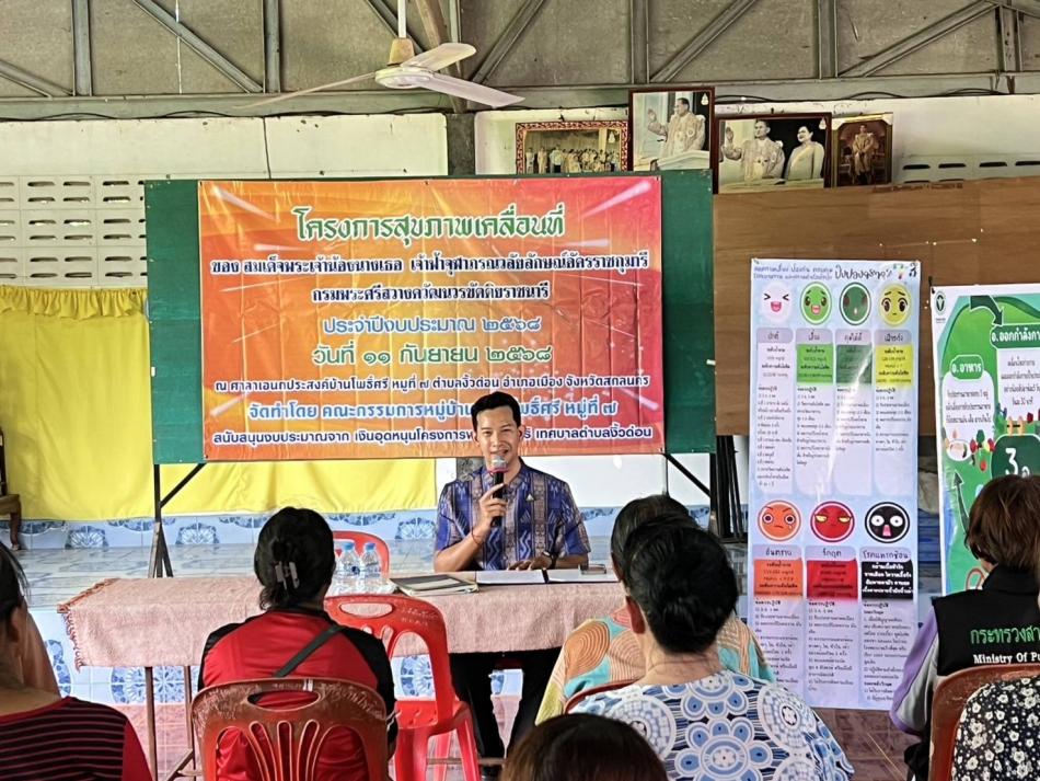 นางสาวจิราภรณ์ เบิกบานดี นายอำเภอเมืองสกลนคร ประธานในที่ประชุมการจัดงานโครงการธรรมะสัญจรครั้งที่ 18 ณ วัดบ้านโพนงามบูรพาภิรมย์ หมู่ที่ 9 [10 กันยายน 2568]