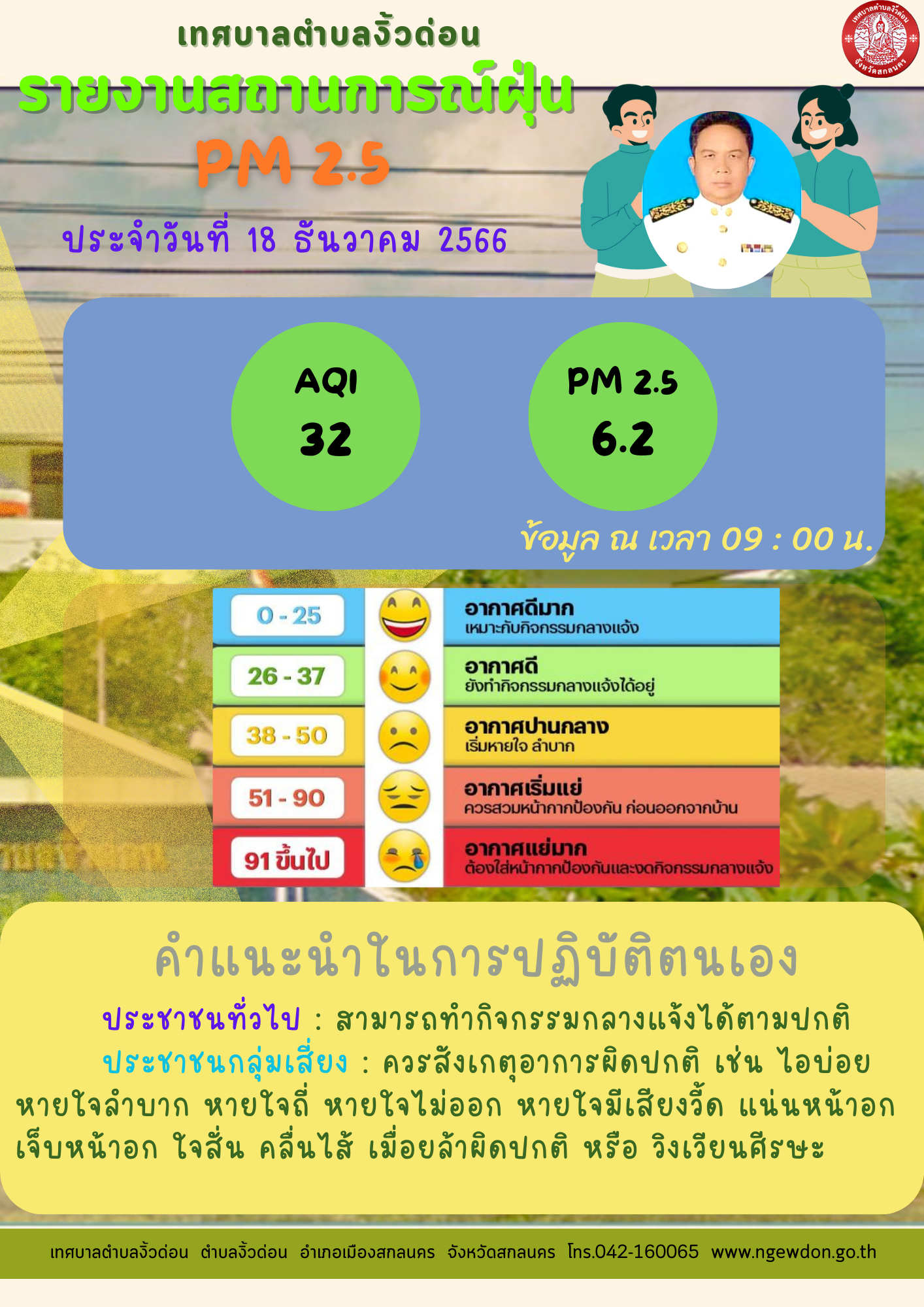รายงานสถานการณ์ฝุ่น PM 2.5 ประจำวันที่ 18 ธันวาคม 2566