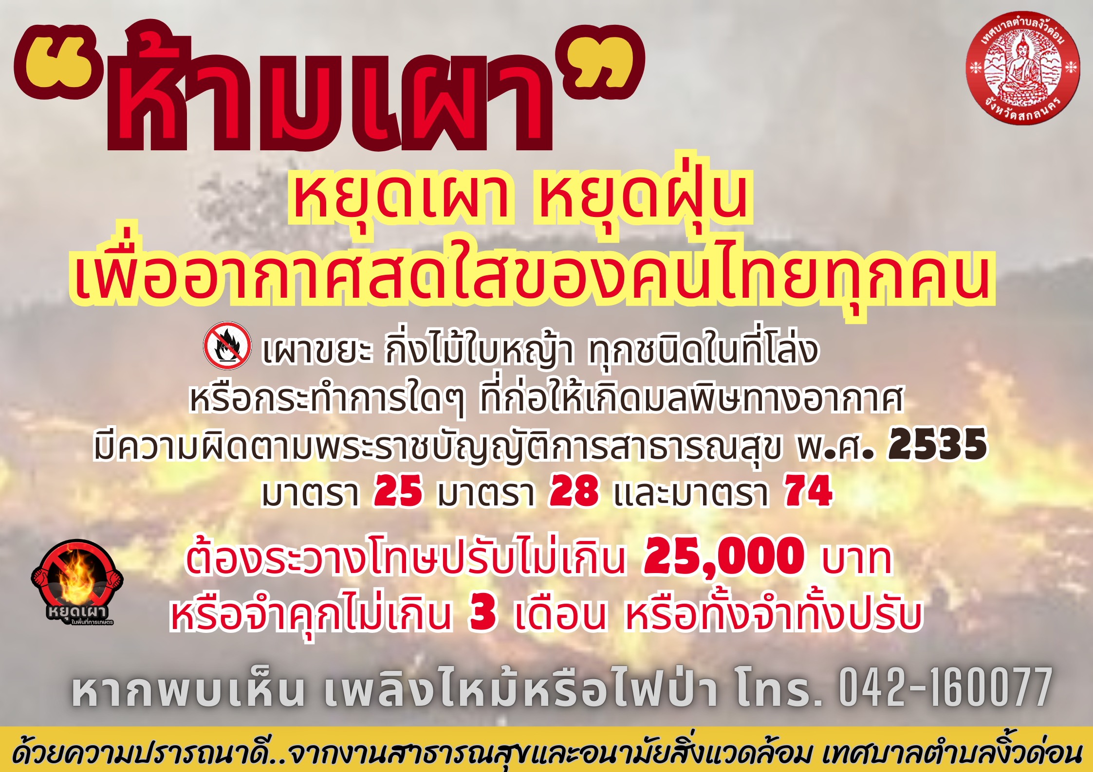 เทศบาลตำบลงิ้วด่อนขอเชิญชวนรณรงค์ หยุดเผา หยุดฝุ่น เพื่ออากาศที่สดใสของทุกคน