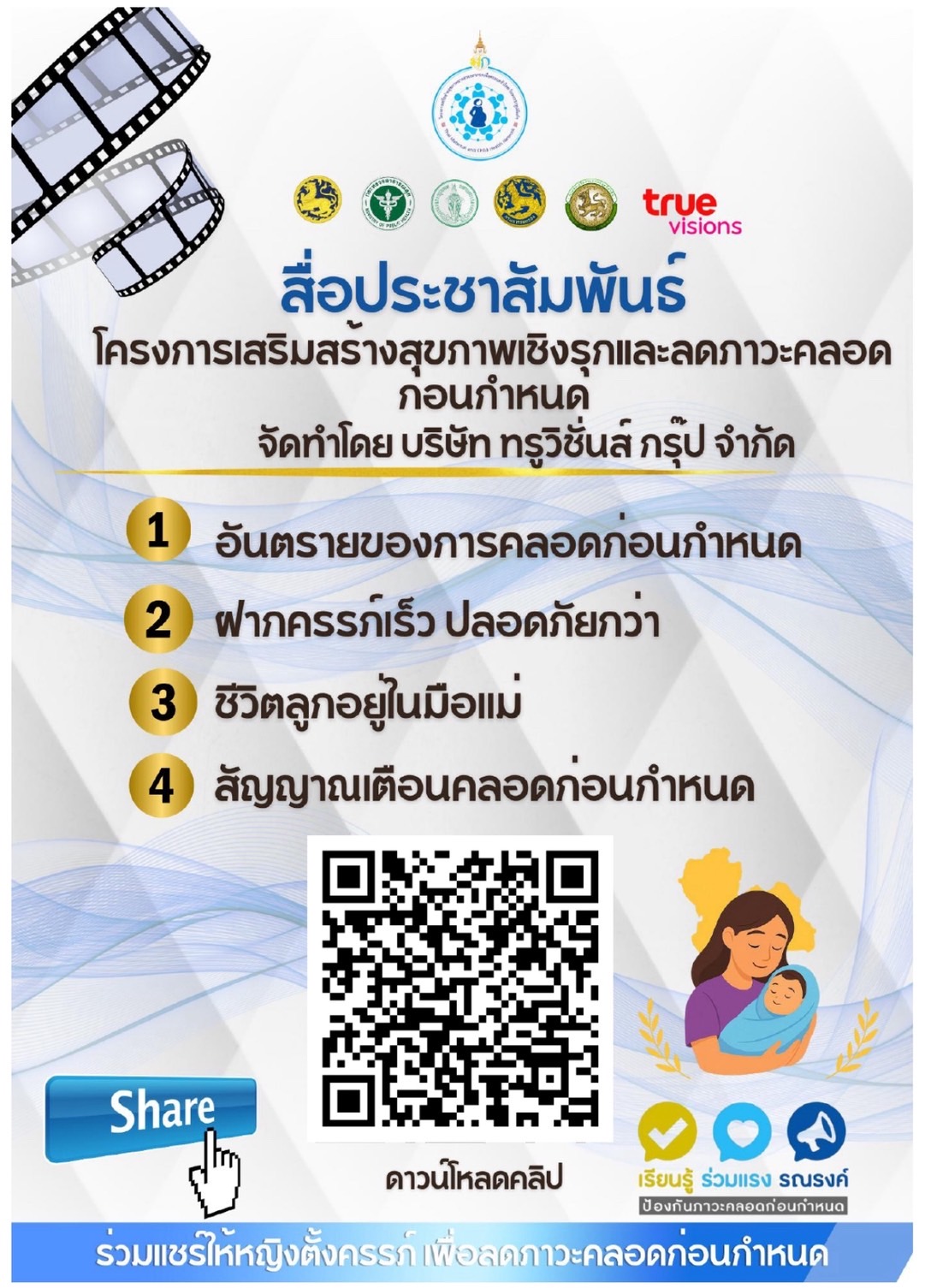 เรื่อง ประชาสัมพันธ์โครงการสร้างเสริมสุขภาพเชิงรุกและลดภาวะคลอดก่อนกำหนด