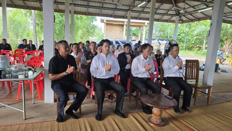 นายถนอม สมผล นายกเทศมนตรีตำบลงิ้วด่อนพร้อมคณะผู้บริหารฯสมาชิกสภาเทศบาล พนักงานเทศบาลตำบลงิ้วด่อน ร่วมพิธีรดน้ำศพ