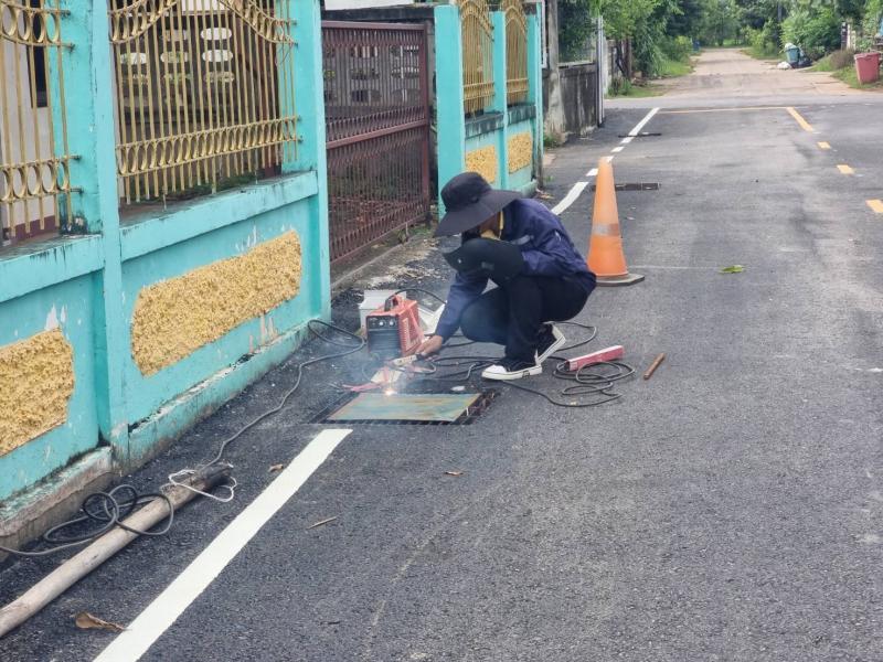 กองช่างเทศบาลตำบลงิ้วด่อน ออกดำเนินการซ่อมแซมฝาบ่อพัก คสล.ถนนลาดยางสาย อิสานเขียว ม.1 บ้านงิ้วด่อน