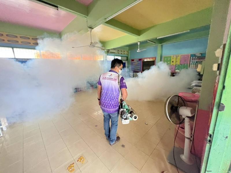รายละเอียด : วันที่ 27 มิ.ย. 2568 งานสาธารณสุขฯเทศบาลตำบลงิ้วด่อน ร่วมกับโรงพยาบาลส่งเสริมสุขภาพตำบลบ้านทับสอ ออกดำเนินการป้องกันและควบคุมโรคไข้เลือดออก โดยออกพ่นหมอกควันกำจัดยุงตัวเต็มวัยและสำรวจลูกน้ำยุงลาย ตามโครงการควบคุมและป้องกันโรคไข้เลือดออก ประจำปีงบประมาณ 2568 ณ โรงเรียนนายอวัฒนา ตำบลงิ้วด่อน