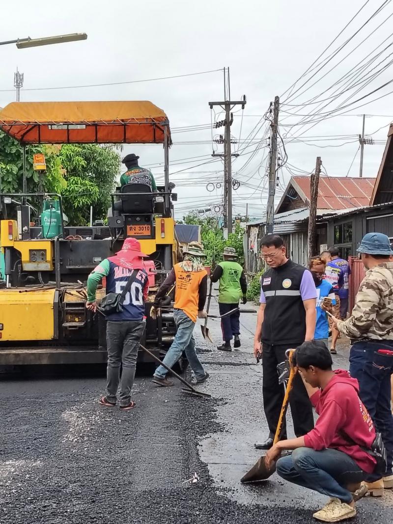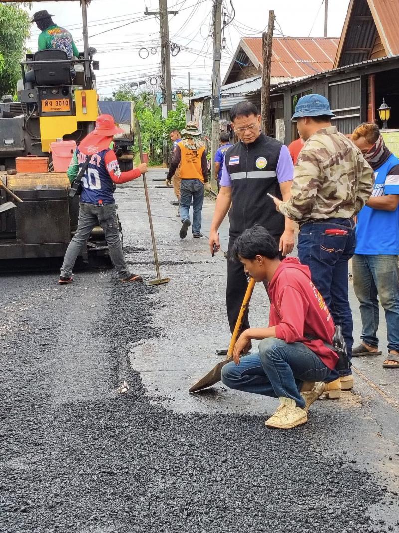 นายกเทศมนตรีตำบลงิ้วด่อน ลงพื้นที่ตรวจความคืบหน้าในการดำเนินการตาม โครงการซ่อมสร้างผิวทางแอสฟัลติกคอนกรีตหมู่ที่ 1 สายหน้าศาลาอิสานเขียว