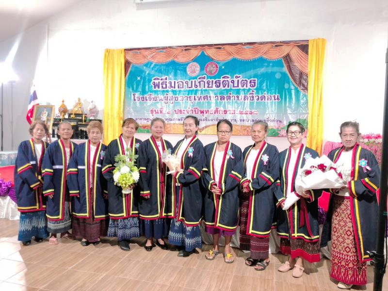พิธีมอบใบประกาศนียบัตรให้กับนักเรียนโรงเรียนผู้สูงอายุเทศบาลตำบลงิ้วด่อน ประจำปีพุทธศักราช 2568
