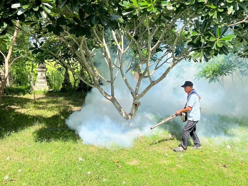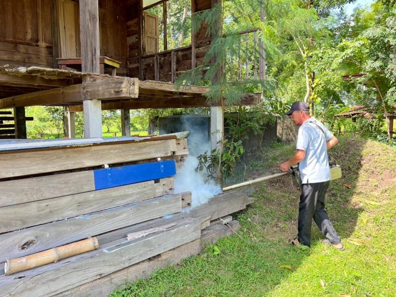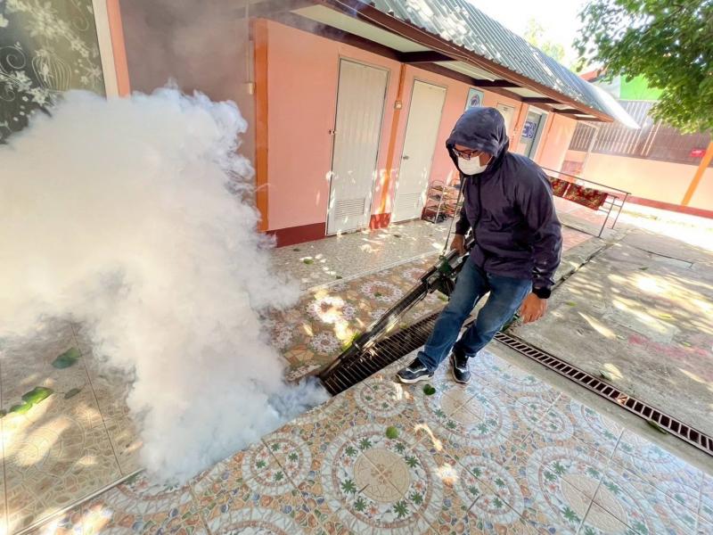 ออกพ่นหมอกควันป้องกันยุงลาย ที่ วัดขามเฒ่า หมู่5 และวัดบ้านคูสนามหมู่3