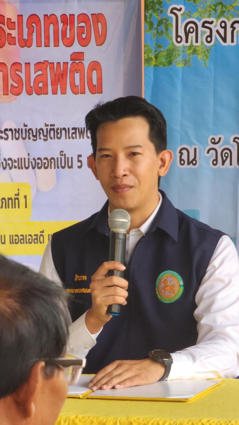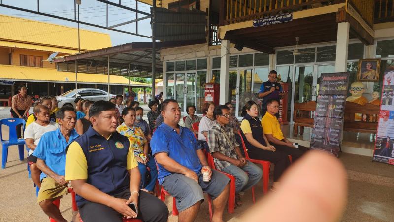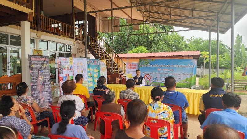 พร้อมด้วยนางสาววรรณธิรา นามเพ็ง เลขานุการฯ สท.ทัศครศรีวาโสม คณะเจ้าหน้าที่โรงพยาบาลส่งเสริมสุขภาพบ้านคูสนาม ร่วมเปิดโครงการอบรมหมู่บ้านร่วมใจต้านภัยยาเสพติด ประจำปีงบประมาณ 2568 หมูที่ 9