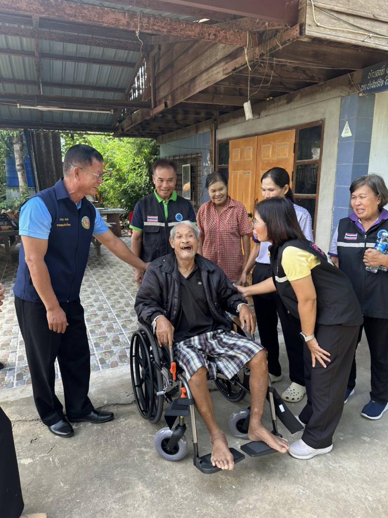นายถนอม สมผล นายกเทศมนตรีตำบลงิ้วด่อน คณะผู้บริหารฯ สท.ทัศคร ศรีวาโสมชตงิด พร้อมด้วย ดร.ทยิดา ยันตะบุษย์ ปลัดเทศบาล นางพัฒนาพุ่มพิบูลย์ หัวหน้าสำนักปลัด และงานสวัสดิการเทศบาลตำบลงิ้วด่อน ลงพื้นที่เพื่อมอบรถเข็นคนพิการ รายนายประสิทธิ์ชัย งิ้วสุภา บ้านโพธิ์ศรี ม. 7