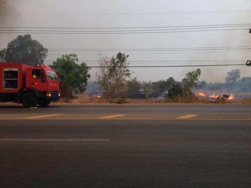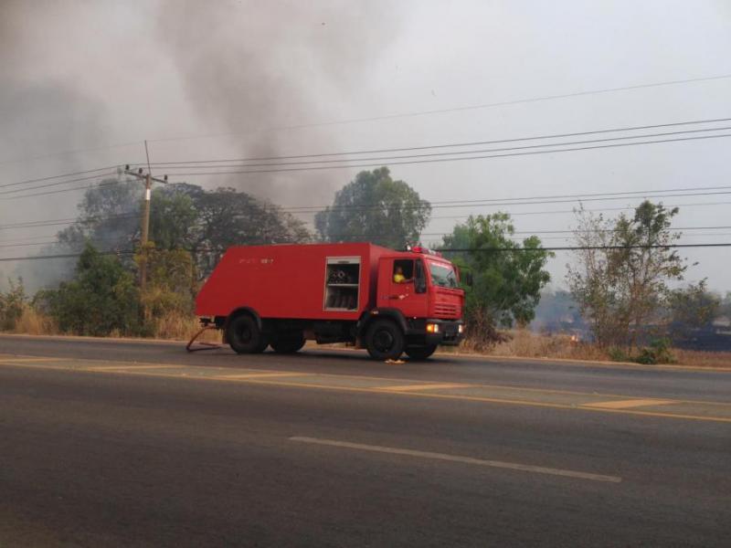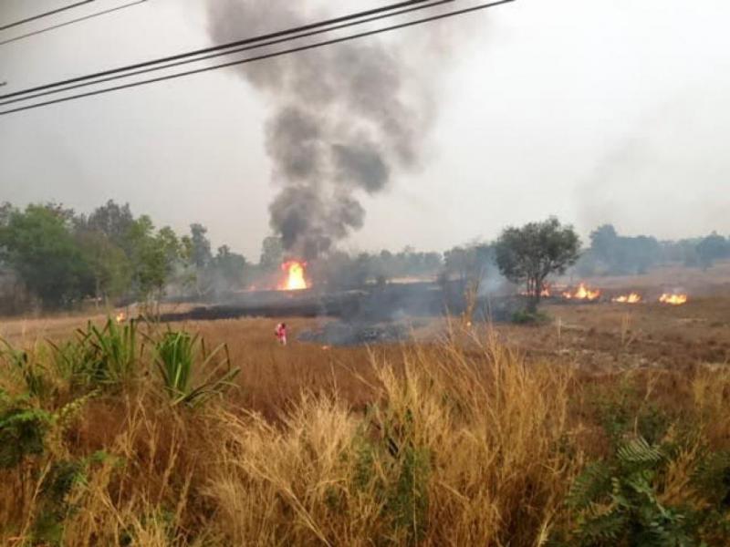 งานป้องกันและบรรเทาสาธารณภัย พนักงานดับเพลิงเทศบาลตำบลงิ้วด่อนได้ออกระงับเหตุเพลิงไหม้ทุ่งนา (6 ภาพ)