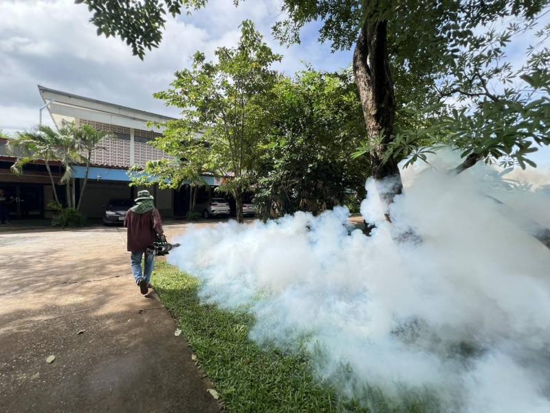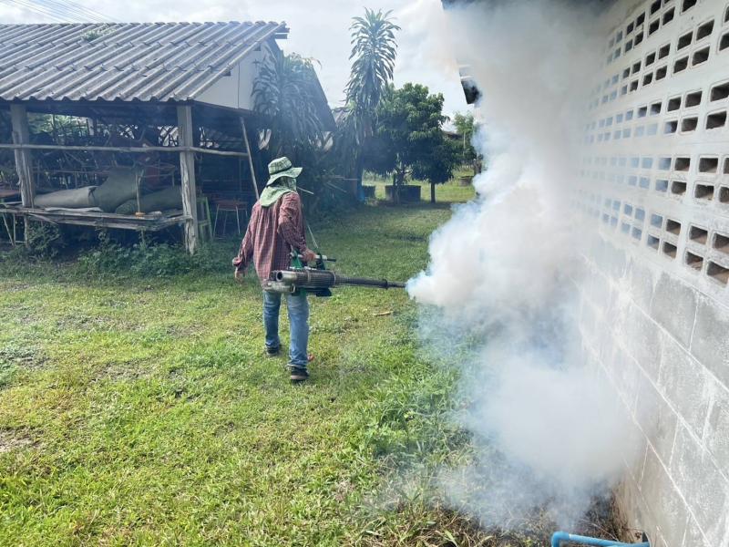 ออกพ่นหมอกควันกำจัดยุงตัวเต็มวัยและสำรวจลูกน้ำยุงลาย ตามโครงการควบคุมและป้องกันโรคไข้เลือดออก ประจำปีงบประมาณ 2568
