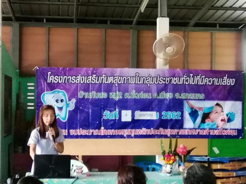 โครงการส่งเสริมทันตสุขภาพในกลุ่มประชาชนทั่วไปที่มีความเสี่ยงบ้านทับสอ หมู่ที่ 2 ตำบลงิ้วด่อน อำเภอเมือง จังหวัดสกลนคร (20 ภาพ)