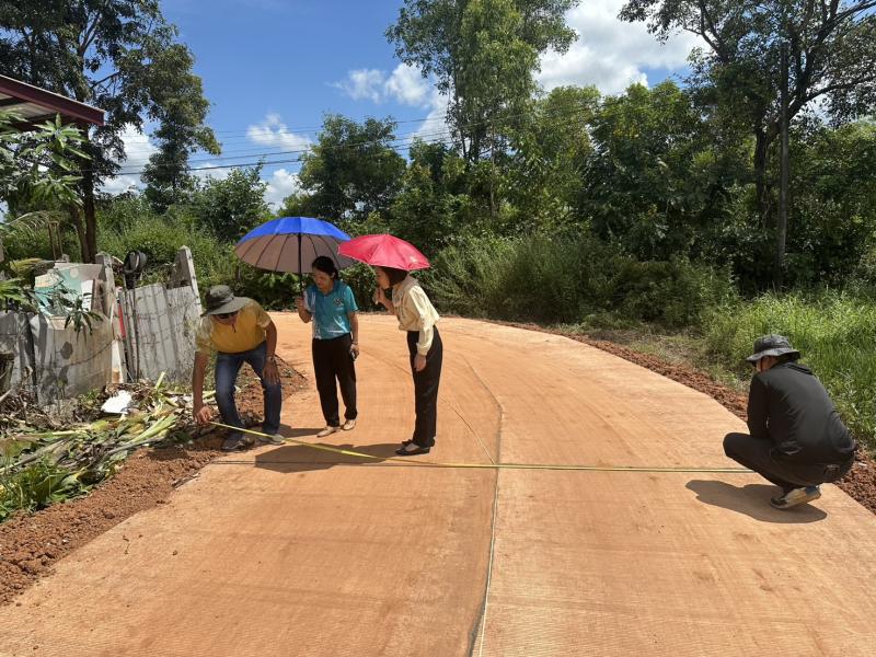 นายถนอม สมผล นายกเทศมนตรีตำบลงิ้วด่อน พร้อมด้วยนายสริภพ สมผล รองนายกเทศมนตรีตำบลงิ้วด่อน และคณะกรรมการตรวจรับงานจ้างตามโครงการก่อสร้างถนนคอนกรีตเสริมเหล็กภายในหมู่บ้าน สายหนองจ่าโท และได้ดำเนินตรวจรับงานจ้างตามโครงการ