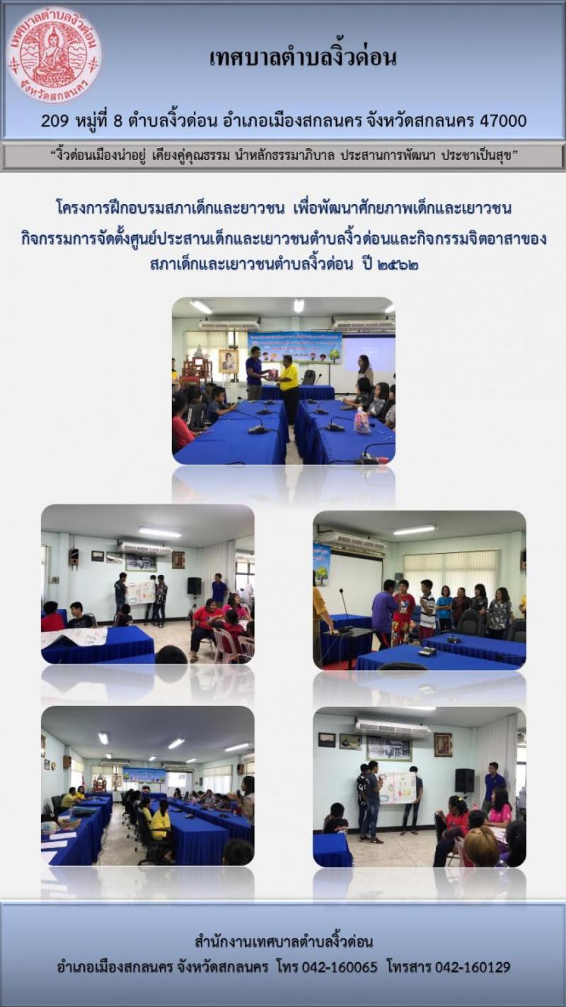 โครงการฝึกอบรมสภาเด็กและยาวชน เพื่อพัฒนาศักยภาพเด็กและเยาวชน กิจกรรมการจัดตั้งศูนย์ประสานเด็กและเยาวชนตำบลงิ้วด่อนและกิจกรรมจิตอาสาของสภาเด็กและเยาวชนตำบลงิ้วด่อน ปี ๒๕๖๒ (29 ภาพ)