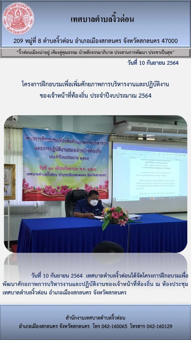 โครงการฝึกอบรมเพื่อเพิ่มศักยภาพการบริหารงานและปฏิบัติงาน ของเจ้าหน้าที่ท้องถิ่น ประจำปีงบประมาณ 2564