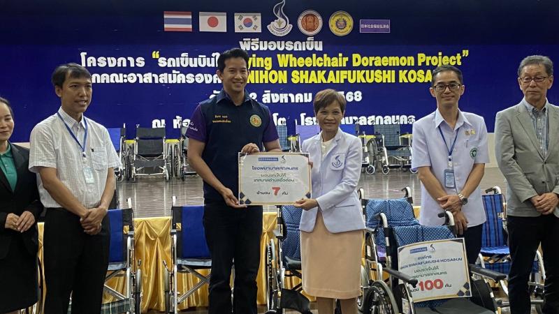 นายกเทศมนตรีตำบลงิ้วด่อนมอบหมายให้รองนายกเทศมนตรีตำบลงิ้วด่อนและงานส่งเสริมสวัสดิการสังคมและพัฒนาชุมชน สำนักปลัด เข้าร่วมพิธีมอบรถเข็น โครงการ “รถเข็นบินได้ Flying Wheelchair Doraemon Project” จากคณะอาสาสมัครองค์กร NIHON SHAKUSHI KOSAIKAI ณ โรงพยาบาลศูนย์สกลนคร