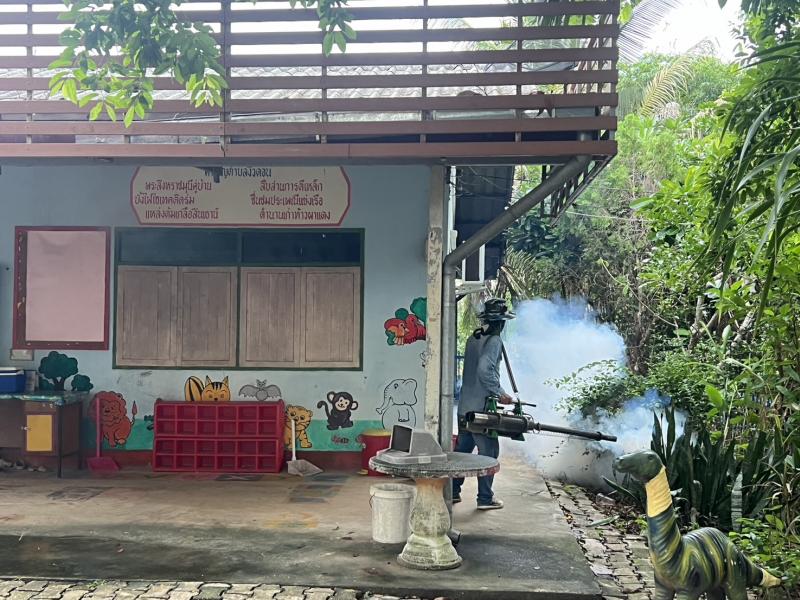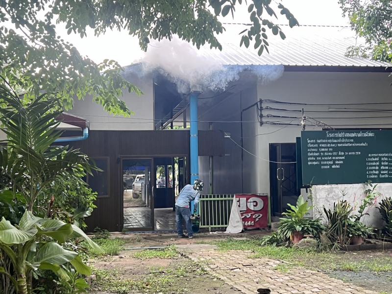 งานสาธารณสุขฯ ออกพ่นหมอกควันป้องกันและควบคุมโรคไข้เลือดออกตามแผนโครงการควบคุมและป้องกันโรคไข้เลือดออก ปีงบประมาณ 2567