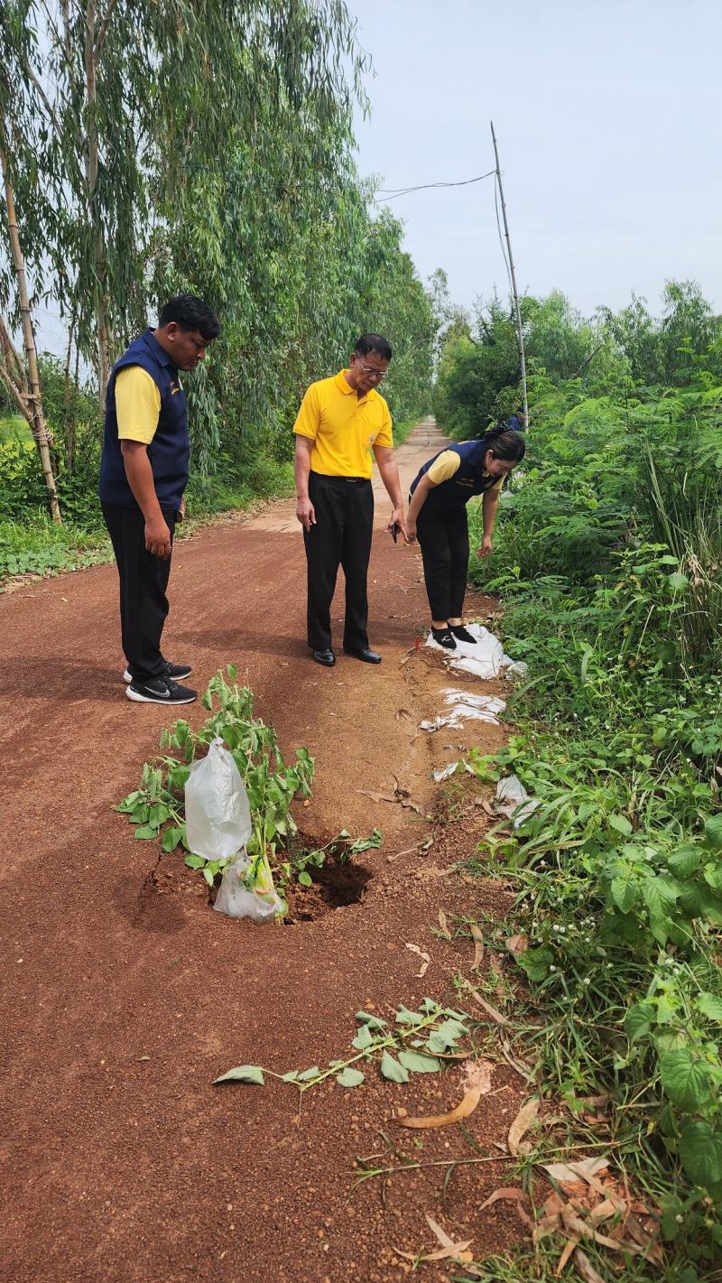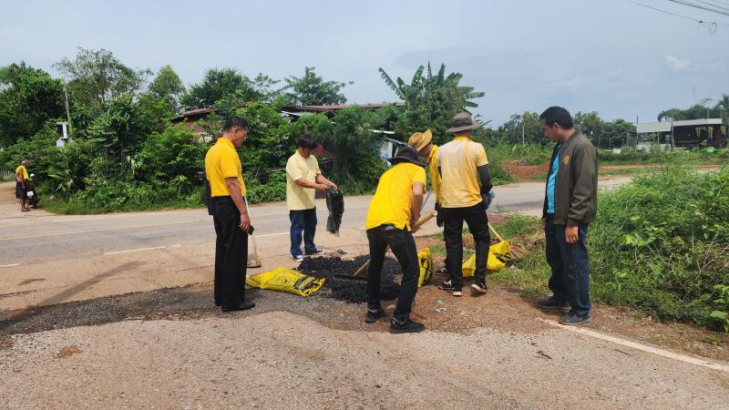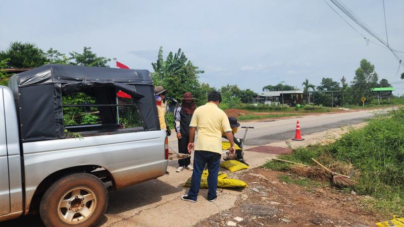 สท.ทัศคร ศรีวาโสมพร้อมด้วยเจ้าหน้าที่กองช่างลงพื้นที่ตรวจสอบถนนชำรุดและเข้าดำเนินการแก้ไขซ่อมแซมให้สามารถใช้งานได้