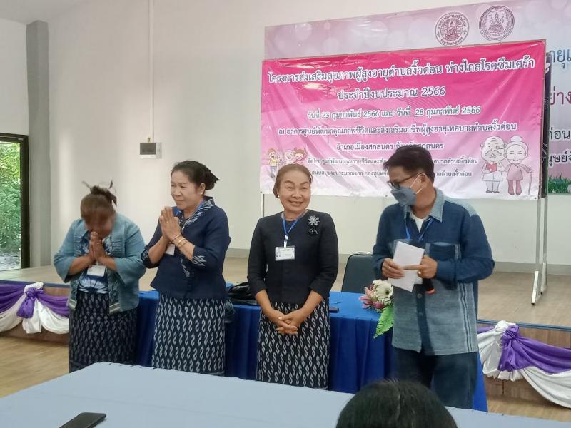 รายละเอียด : วันที่ ๒๓ กุมภาพันธ์ ๒๕๖๖ เเละวันที่ ๒๘ กุมภาพันธ์ ๒๕๖๖ นายจำเนียร วงศ์กาฬสินธุ์ นายกเทศมนตรีตำบลงิ้วด่อน เข้าร่วมเป็นประธานในพิธีเปิดโครงการส่งเสริมสุขภาพผู้สูงอายุตำบลงิ้วด่อน ห่างไกลโรคซึมเศร้า ประจำปีงบประมาณ ๒๕๖๖ ของงานศูนย์พัฒนาคุณภาพชีวิตเเละส่งเสริมอาชีพผู้สูงอายุเทศบาลตำบลงิ้วด่อน โดยมีเป้าหมายผู้เข้าร่วมกิจกรรมประกอบด้วยผู้สูงอายุตำบลงิ้วด่อน คณะผู้บริหาร และเจ้าหน้าที่รับผิดชอบโครงการฯ จำนวน ๕๐ คน จัดกิจกรรม ณ ศูนย์พัฒนาคุณภาพชีวิตเเละส่งเสริมอาชีพผู้สูงอายุเทศบาลตำบลงิ้วด่อน อำเภอเมืองสกลนคร จังหวัดสกลนคร ได้รับการสนับสนุนวิทยากรจาก สำนักงานพัฒนาสังคมเเละความมั่นคงของมนุษย์จังหวัดสกลนคร เเละโรงพยาบาลส่งเสริมสุขภาพตำบล บ้านคูสนาม