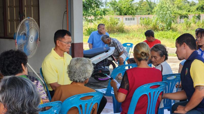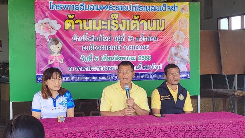 นายถนอม สมผล นายกเทศมนตรีตำบลงิ้วด่อน พร้อมด้วย สท.บุญเวียน นนท์ไพวัลย์ ร่วมเปิดโครงสืบสานพระราชปณิธานสมเด็จย่าต้านมะเร็งเต้านม บ้านงิ้วด่อนใหม่ หมู่ที่16