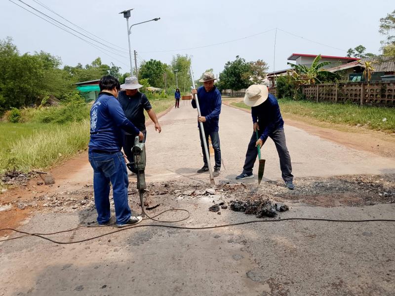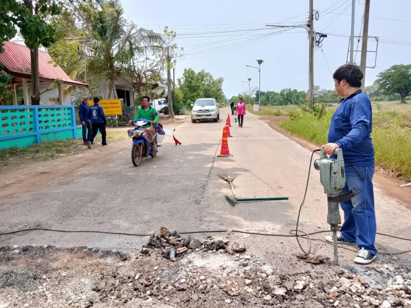 กองช่างเทศบาลตำบลงิ้วด่อน ออกดำเนินการปรับปรุงผิวถนนสายธาตุดูม - หนองแดง จุดบ้านดอนจ้อก้อ