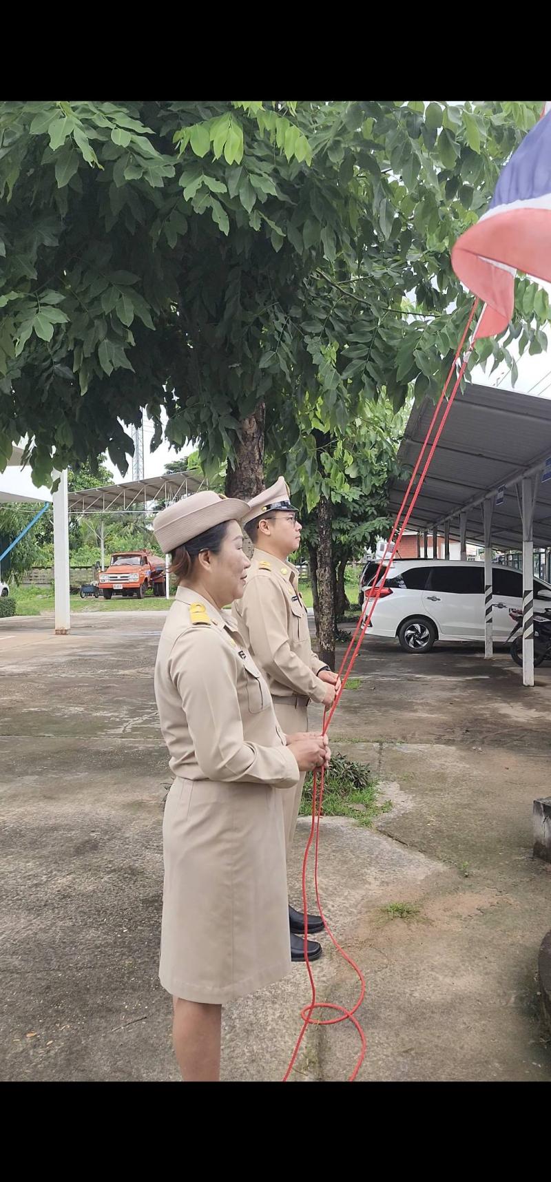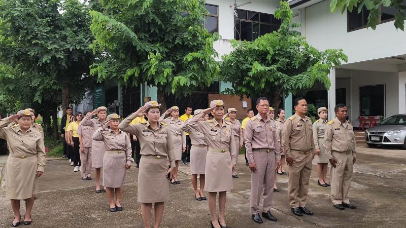 พร้อมคณะผู้บริหาร ปลัดเทศบาลและหัวหน้าส่วนราชการและพนักงานเทศบาล พนักงานจ้างเทศบาลตำบลงิ้วด่อน ร่วมกิจกรรมเคารพธงชาติเนื่องในวันพระราชทานธงชาติไทย