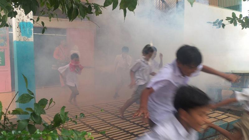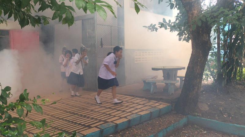 งานป้องกันและบรรเทาสาธารณภัยฯ ร่วมกิจกรรมฝึกอบรมดับเพลิงขั้นต้นและอพยพหนีไฟ ณ โรงเรียนนายอวัฒนา