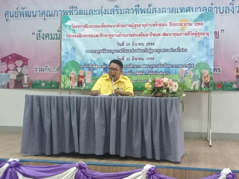 โครงการฝึกอบรมเพื่อพัฒนาศักยภาพผู้สูงอายุตำบลงิ้วด่อน ปีงบประมาณ ๒๕๖๖ “ กิจกรรมฝึกอบรม และศึกษาดูงานด้านการส่งเสริมอาชีพและพัฒนาคุณภาพชีวิตผู้สูงอายุ "