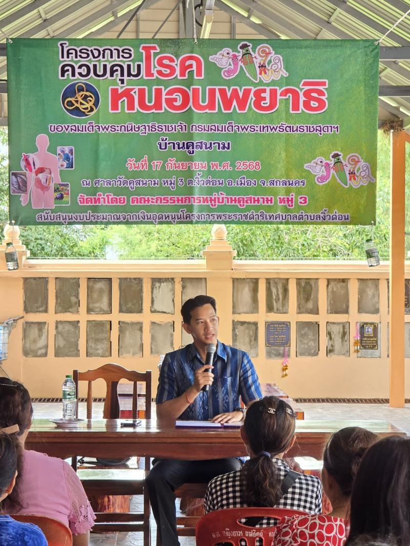 นายกเทศมนตรีตำบลงิ้วด่อนมอบหมายให้นายสิรภพ สมผล รองนายกเทศมนตรีตำบลงิ้วด่อน เป็นประธานเปิดโครงการอบรมควบคุมโรคพยาธิ หมู่ที่ 3 บ้านคูสนาม