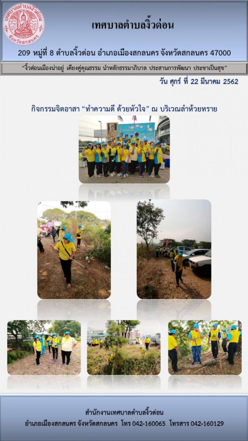 เทศบาลตำบลงิ้วด่อน ร่วมกิจกรรมจิตอาสา "ทำความดี ด้วยหัวใจ" ณ บริเวณลำห้วยทราย ตำบลธาตุเชิงชุม อำเภอเมืองสกลนคร (15 ภาพ)