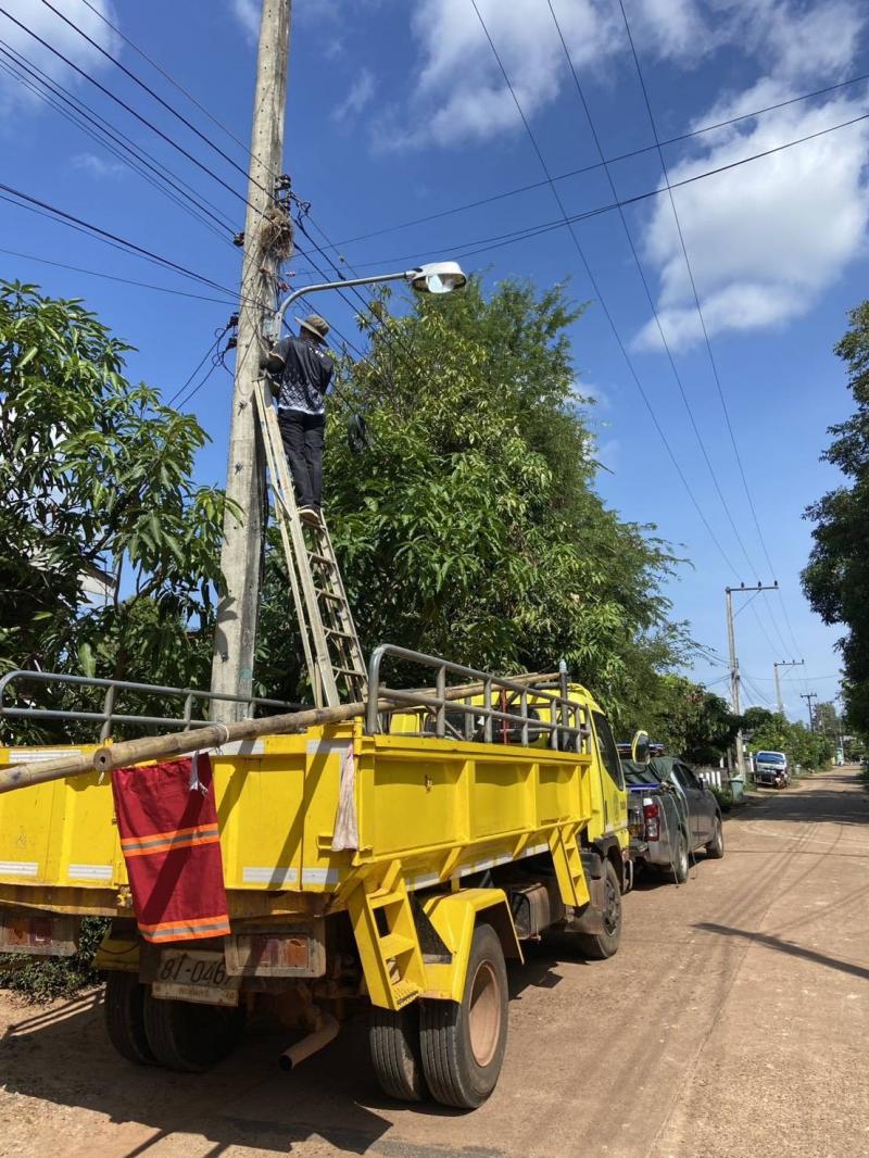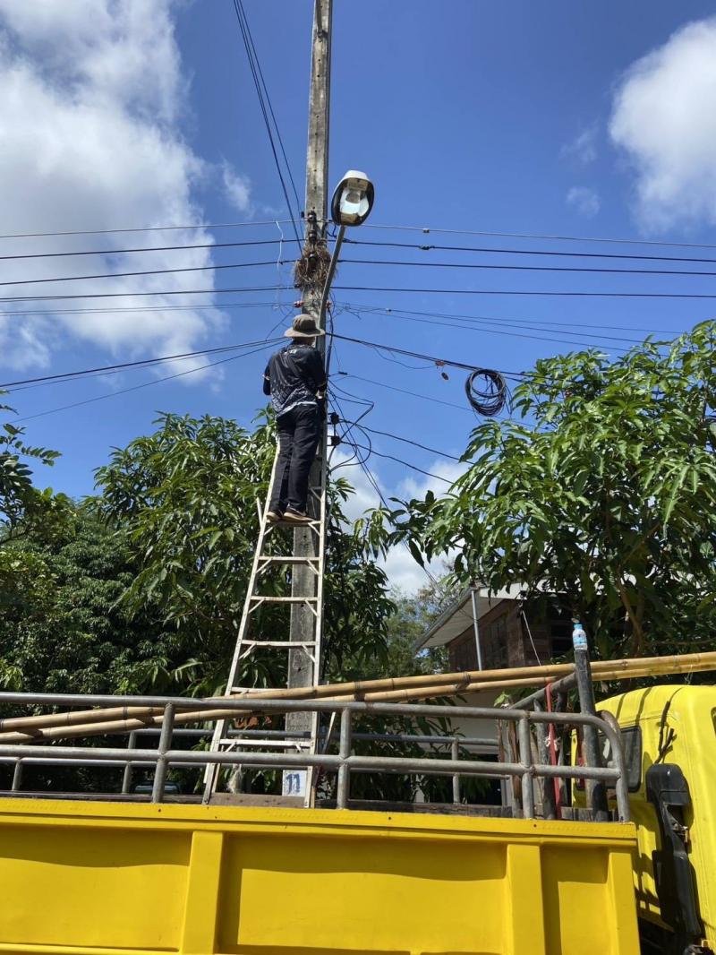 กองช่างเทศบาลงิ้วด่อน ออกดำเนินการติดตั้งไฟส่องสว่างจำนวน 2 จุด บ้านกกกอก ม.12 ติดตั้งชุดโคมไฟพร้อมสวิตช์แสง 1 ชุด, บ้านเหล่าพังผือเปลี่ยนหลอดไฟและสวิตซ์แสง 1 จุด