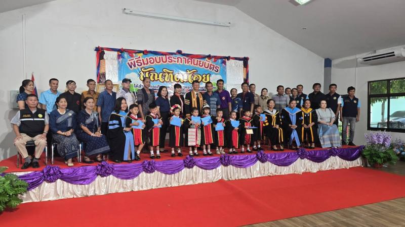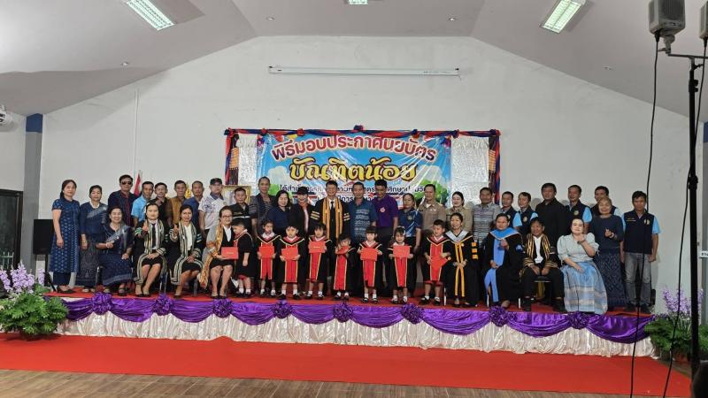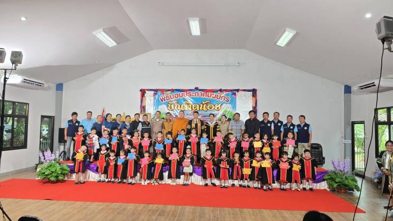 นายถนอม สมผล นายกเทศมนตรีตำบลงิ้วด่อน มอบใบประกาศนียบัตรบัณฑิตน้อยที่สำเร็จการศึกษาตามหลักสูตรปฐมวัย ประจำปีการศึกษา 2568 ของศูนย์พัฒนาเด็กเล็กในสังกัดเทศบาลตำบลงิ้วด่อน
