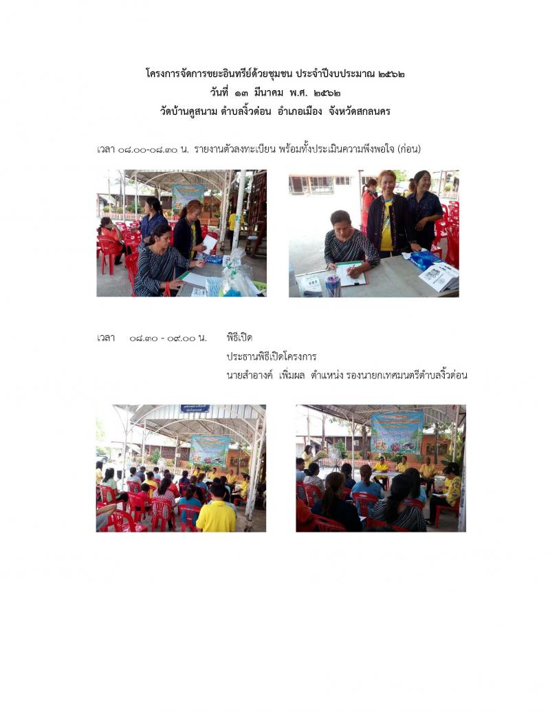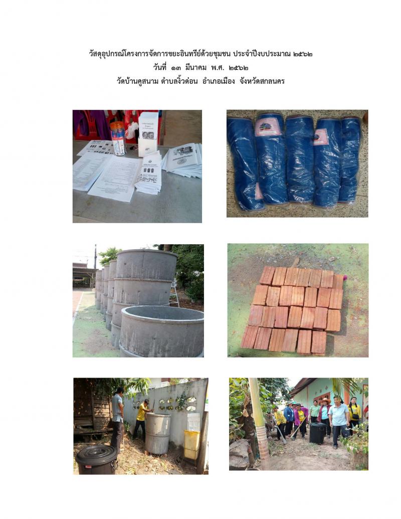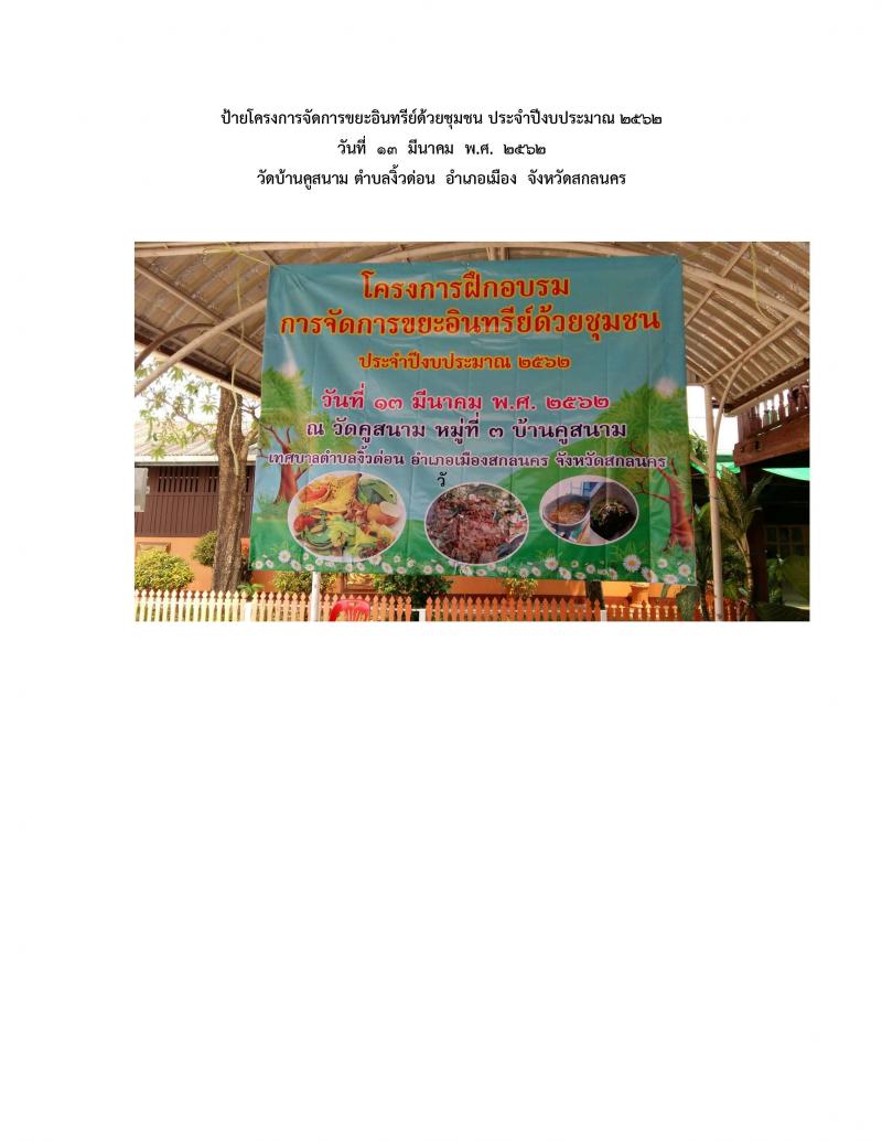โครงการจัดการขยะอินทรีย์ด้วยชุมชน ประจำปีงบประมาณ ๒๕๖๒ วัดบ้านคูสนาม ตำบลงิ้วด่อน อำเภอเมือง จังหวัดสกลนคร