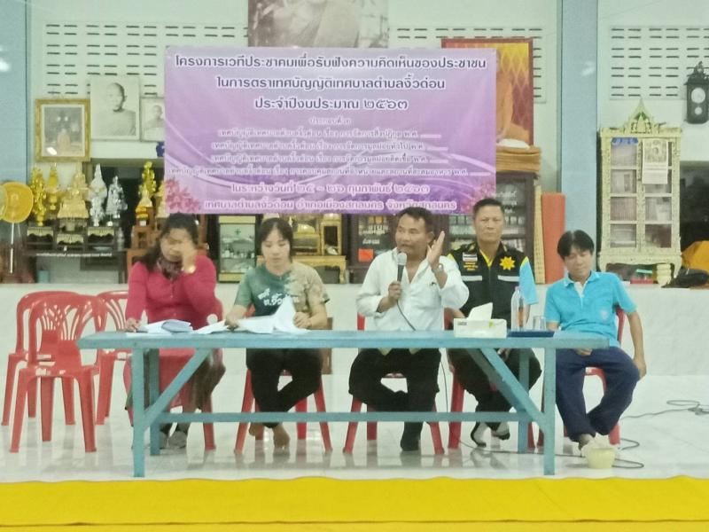 โครงการเวทีประชาคมเพื่อรับฟังความคิดเห็นของประชาชนในการตราเทศบัญญัติเทศบาลตำบลงิ้วด่อน ประจำปีงบประมาณ 2563